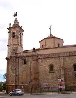 Originalmente la iglesia del monasterio fue edificada en estilo gótico,[14] pero posteriormente fue reedificada entre los siglos XVI y XVIII, coincidiendo con la época de mayor esplendor de la ciudad.[12] Los muros del templo están reforzados con machones construidos con piedra de sillería, y en ellos hay ventanales en forma de arco semicircular.[12] Una puerta de gran altura, cobijada por un arco saliente y orientada hacia el norte, permite acceder al templo, y en su remate, de forma triangular, aparece el escudo de la Orden franciscana.[12]