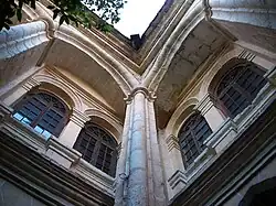 En estudios recientes sobre la arquitectura del monasterio, se estima que el autor de la escalera de estilo gótico flamígero del claustro inferior, así como de las esculturas góticas del claustro superior, muy probablemente fue el propio taller de Pere Compte, arquitecto de la Lonja de Valencia.[1]