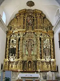 El mobiliario de la iglesia consiste en una serie de retablos realizados en el recargado estilo barroco a caballo entre los siglos XVII y XVIII. El más notable es el Retablo Mayor, típica mazonería dorada barroca profusamente decorada, de hacia 1700, consistente en predela, cuerpo de tres calles separadas por columnas salómónicas con ornato vegetal y ático semicircular, es decir, un retablo hexástilo. Su ensamblaje y escultura han sido atribuidas a los artistas bercianos José de Ovalle y Bernardo de Quirós. El espacio central lo ocupa una talla de Nuestra Señora de la Asunción, rodeada de querubines; a sus lados, bultos redondos de los santos Benito y Bernardo, sobre los cuales se sitúan sendos relieves alusivos a sus personas. San Miguel, en actitud guerrera y venciendo al Diablo, se sitúa en el ático. En el banco, el sagrario-tabernáculo con exposición de una pequeña imagen del Niño Jesús, obra barroca del XVII procedente del monasterio de Alcalá de Henares.