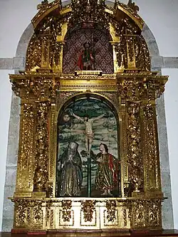 De menor tamaño aunque de similar estilo son otros cuatro retablos dispuestos en los laterales, dos en el crucero, de pequeño tamaño y cuerpo único, y dos en el último tramo de la nave, de un cuerpo más ático. Seguramente son obra también de José de Ovalle. El del brazo izquierdo del crucero está dedicado a Santa Escolástica, el del brazo derecho del crucero a San José y el Niño, el del lado izquierdo de la nave a Santa Teresa Reina y el del lado derecho de la nave está presidido por un Calvario. Todos ellos acogen tallas de bulto redondo del santo al que van dedicados. De los cuatro, el más interesante artísticamente es el Retablo del Calvario. La hornacina del cuerpo acoge a María, San Juan y Cristo crucificado; la del cuerpo superior a un San Roque.