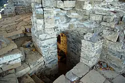 Todavía se alza una estructura de la iglesia inferior, a la cual se accede a través de un pasadizo abovedado que se halla bajo la nave central, por lo que parece que esta era una cripta y había otra nave encima al estilo como la que se encuentra en Samitier. La nave se comunica con el pasadizo por una puerta con arco de medio punto peraltado.