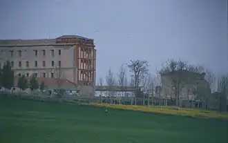![]() A la derecha y detrás de los árboles, los restos del monasterio, incluido la capilla | ||