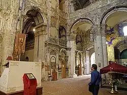 - iglesia de la Santísima Trinidad (1686–1698), al igual que otros edificios principales, fue terminada con mayólica y molduras de estuco.