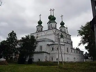 El monasterio de la Trinidad fue reconstruido entre finales del siglo XVIII y principios del siguiente y constituye un ejemplo notable de la arquitectura religiosa rusa de este periodo. Los mercaderes ricos de la guilda de Ústiug hicieron construir la iglesia de la Trinidad, la iglesia de Nuestra Señora de Tijvin con un refectorio (trápeznaya), la iglesia de la Asunción y una enfermería. En el siglo XVIII, la iglesia de la Trinidad fue conectada a la iglesia de Nuestra Señora de Tijvin por una galería.