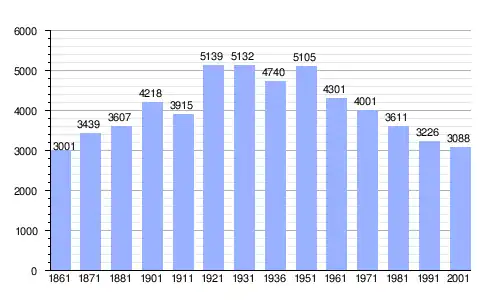 | Gráfica de evolución demográfica de Monforte de San Jorge entre 1861 y 2001 |