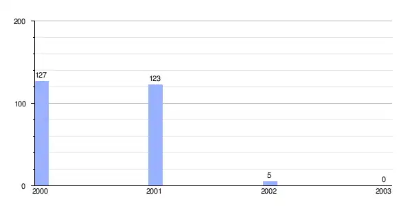 | Gráfica de evolución demográfica de Monte Devesa entre 2000 y 2003 |