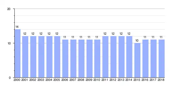 | Gráfica de evolución demográfica de Montelongo entre 2000 y 2018 |