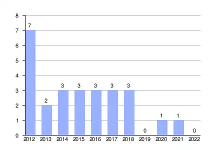 | Gráfica de evolución demográfica de Montenegro entre 2012 y 2022 |