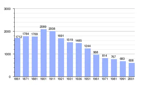 | Gráfica de evolución demográfica de Montenero Val Cocchiara entre 1861 y 2001 |