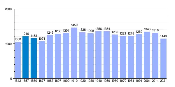 | Gráfica de evolución demográfica de Montesa[2] entre 1842 y 2021 |