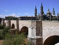 Situado en el mismo lugar que el puente romano, el actual es gótico del siglo XV y es el puente más antiguo que se conserva sobre el Ebro. De historia muy accidentada a causa de las crecidas del río y los avatares de la historia, ha sufrido numerosas remodelaciones. Actualmente posee siete arcos vistos y uno oculto bajo la calle que transcurre a la orilla del río.