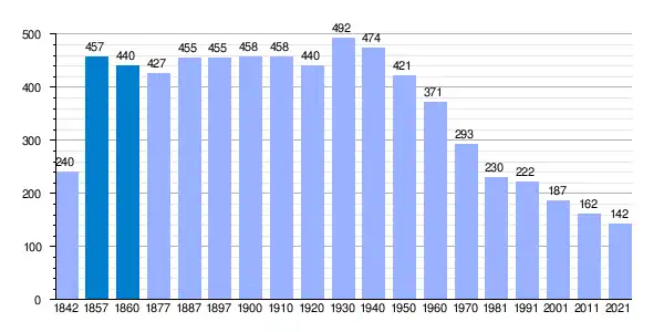 | Gráfica de evolución demográfica de Morales de Campos[2] entre 1842 y 2021 |
