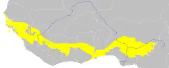 Es una ecorregión de sabana que cubre un área de 673.600 kilómetros cuadrados, y se extiende desde la costa de Senegal y Gambia hasta el este de Nigeria; incluye partes de Guinea-Bisáu, Guinea, Sierra Leona, Costa de Marfil, Ghana, Togo, Benín y Camerún.