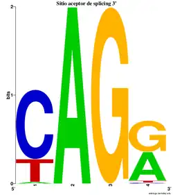 - ↑ Hujová, Pavla; Grodecká, Lucie; Souček, Přemysl; Freiberger, Tomáš (2019-06). «Impact of acceptor splice site NAGTAG motif on exon recognition». Molecular Biology Reports 46 (3): 2877-2884. ISSN 1573-4978. PMID 30840204. doi:10.1007/s11033-019-04734-6. Consultado el 20 de diciembre de 2020.