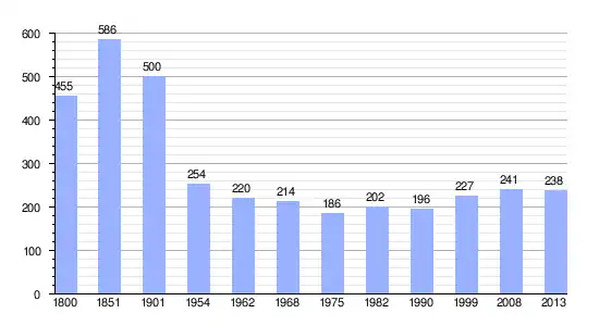 Los datos demográficos contemplados en este gráfico de la comuna de Dordoña[4] se han cogido de 1800 a 1999 de la página francesa EHESS/Cassini, y los demás datos de la página del INSEE.[5]
