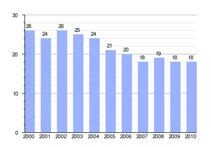 Población de derecho (2000-2010) según los censos de población del INE a 1 de enero de cada año.[3] |