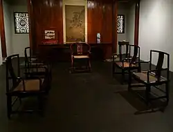 ´´Shu-an´´(en chino: 书案),´´Hua-zhuo´´(en chino: 画桌) y ´´Qin-zhuo´´(en chino: 琴桌), son mesas alargadas que se encuentra en el estudio. Las dos primeras son parecidas, destinadas a estudiar y pintar, mientras la tercera de dimensión mucho más reducida está diseñada expresamente para tocar el ´´Qin´´, instrumento musical chino de cítara que se toca horizontalmente.