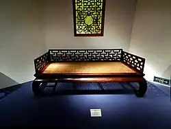 ´´Luohan-chuang´´(en chino: 罗汉床), cama de Arhat. Cama rodeada por sus tres lados de tablero como respaldo y brazos. Estos también pueden ser de tracería como una barandilla con un lado de frente abierto para el acceso.