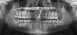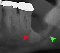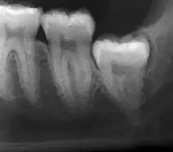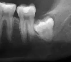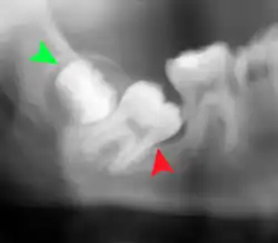 - ↑ Phillips C, White RP (Septiembre 2012). "How predictable is the position of third molars over time?". Journal of Oral and Maxillofacial Surgery. 70 (9 Suppl 1): S11 – S14. doi:10.1016/j.joms.2012.04.024. PMID 22705213.