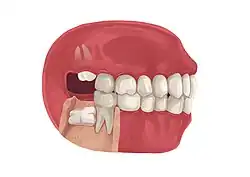 - ↑ a b Pogrel MA (Septiembre 2012). "What is the effect of timing of removal on the incidence and severity of complications?". Journal of Oral and Maxillofacial Surgery. 70 (9 Suppl 1): S37 – S40. doi:10.1016/j.joms.2012.04.028. PMID 22705212.