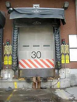- Esta obra contiene una traducción derivada de «Loading dock» de Wikipedia en inglés, publicada por sus editores bajo la Licencia de documentación libre de GNU y la Licencia Creative Commons Atribución-CompartirIgual 4.0 Internacional.