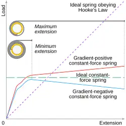 Un muelle de fuerza constante ideal es un tipo de resorte tal que la fuerza necesaria para su alargamiento es constante, es decir, no obedece la ley de Hooke. En realidad, los "muelles de fuerza constante" no proporcionan una fuerza verdaderamente constante, y se construyen con materiales que obedecen a la ley de Hooke. En general, se diseñan a partir de una cinta enrollada de acero elástico, conformada de tal manera que el resorte tiende a enrollarse cuando está relajado.