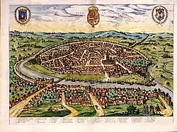 En este dibujo de Sevilla en 1588 aparecen los galeones en la orilla del Arenal