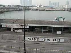 Tras el desmantelamiento del muelle el 12 de noviembre de 2006, la demolición inició a la vez que unos manifestantes protestaron en su contra. Originalmente, la demolición se programó para los primeros meses de 2007, pero fue adelantada 12 de diciembre de 2006. El Gobierno ignoró una moción no vinculante emitida en septiembre en el Consejo Legislativo de Hong Kong, la cual instaba a conservar el muelle y la torre del reloj.[10]