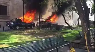 ![]() Patrullas de la policía incendiadas durante las protestas por la muerte de López | ||