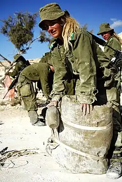 Según la FDI, 535 mujeres soldado israelíes fallecieron en operaciones de combate entre 1962 y 2016.[3] Las mujeres han participado en el ejército de Israel antes y desde la fundación del estado en 1948,[4][5] comprenden más del 20% de las fuerzas israelíes en 1948, y 33% de todos los soldados de las FDI y 51% de sus oficiales, en 2011,[6] cumpliendo varios roles dentro de las Fuerzas Terrestre, Naval y Aérea. La enmienda de igualdad de 2000 a la ley de servicio militar establece que "el derecho de las mujeres a servir en cualquier rol en las FDI es igual al derecho de los hombres". 88% a 92% [7] de todas los roles en las FDI están abiertos a las candidatas, mientras que las mujeres se encuentran en el 69% de todos los puestos.[1]