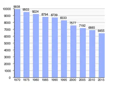 | Gráfica de evolución demográfica de Bräcke entre 1970 y 2015 |