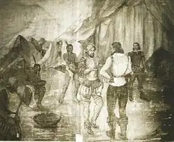 En el año 1583, en el poblado de Mesquitique, Fray Diego de la Magdalena congregó a varios naturales huachichiles. Entre estos llegó uno llamado Cualiname o Gualiname, el cual llamó su atención al traer en la pintura de su cara trazos dorados (embrijado, esta mezcla se hacía con cinabrio, grasa animal y trazos de oro). El fraile le preguntó dónde había obtenido dicho pigmento. El natural le hizo entender que al oriente de su localización actual se encontraba mucho de aquel polvo.
