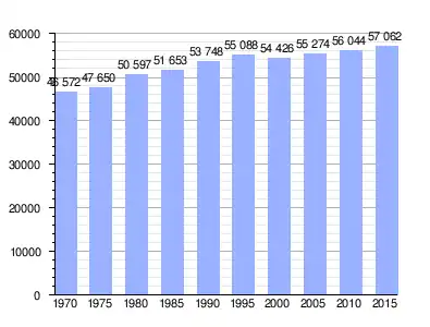 | Gráfica de evolución demográfica de Falun entre 1970 y 2015 |