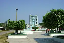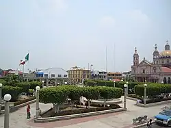 Jardinado con palmeras, almendros, ficus y gran variedad de plantas de ornato. Su plaza y andadores están adoquinados, sobresale una fuente de forma circular en cuyo centro se construyó una gran jícara con magníficos labrados que representa la artesanía típica del municipio.