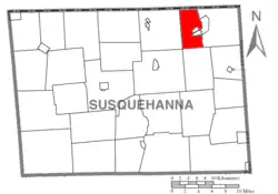 Ubicación en el condado de Susquehanna ![]() Ubicación del condado en Pensilvania ![]() Ubicación de Pensilvania en EE. UU. | ||