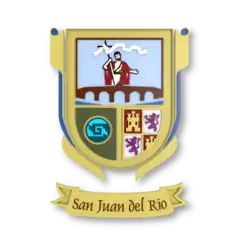 - ↑ [Anteriormente, el escudo de la ciudad representaba al puente de la historia o puente de piedra, con el escudo de la corona española. En 1985, el Ayuntamiento de la Ciudad, convocó un diseño para tener un escudo oficial, siendo electo el más significativo, el del autor Héctor Rojas. Se compone de un blasón tradicional acompañado de un par de cenefas que descienden desde la parte superior y se unen en la parte central inferior. El blasón se divide en tres secciones representativas del municipio de la siguiente forma: en el medio superior, se ubica la imagen del Santo Patrono San Juan Bautista, erguido sobre el “Puente de la Historia” representando la fundación y la evangelización del pueblo. El medio inferior, se divide a su vez en dos partes que representan el momento previo a la evangelización: el lado izquierdo se ubica la rode la otomí, que simboliza nuestras raíces prehispánicas; el lado derecho da espacio al escudo español, como significado de quienes fundan la ciudad. En la parte baja del blasón se ubica un gallardete que lleva inscrito el nombre del municipio. «Escudo del municipio San Juan del Rio»].