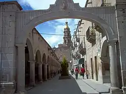 Templo de San Miguel Arcángel.Portal que conecta la Plaza de Armas de San Miguel el Alto con la Parroquia.