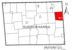 Ubicación en el condado de Susquehanna ![]() Ubicación del condado en Pensilvania ![]() Ubicación de Pensilvania en EE. UU. | ||