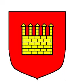 Sus armas primitivas constaban de un muro dorado con cinco almenas en campo de gules,[5][6] aunque también se hay variaciones en las que entre las almenas asoma un jefe blandiendo una espada.[7] Igualmente, conforme el linaje fue entroncando con distintas familias sus heráldica fue cambiando;[8]