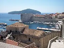 Es uno de los sectores más antiguos de Dubovnik y fue construido alrededor de un último castillo antiguo junto al mar, que se extendía hacia el exterior un poco más que en la actualidad.[30] Fue construido en el sitio de la catedral prerrománica y el Palacio del Rector, por lo tanto envuelve el puerto.[30] El puerto fue diseñado y construido por el ingeniero Paskoje Miličević a finales del siglo XV.[30] En un tríptico del artista Nikola Božidarević de 1500, se puede observar dónde está el puerto está ubicado, ya que San Blas porta una maqueta de la ciudad sobre ambas manos.[30][31]