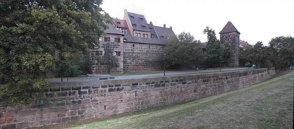 - ↑ a b c «Generalsanierung der historischen Äußeren Stadtgrabenstützmauer - Servicebetrieb Öffentlicher Raum». www.nuernberg.de. Consultado el 28 de agosto de 2022.