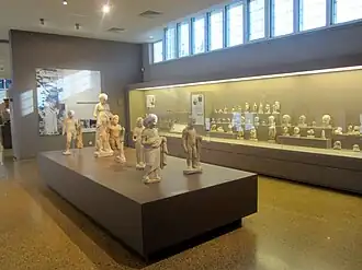 En la antesala del museo se expone la historia de las excavaciones en el área y la restauración de la estoa del santuario.