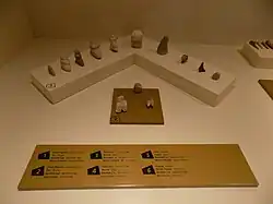 La exposición incluye herramientas, cerámica, estatuillas votivas, objetos de metal, sellos, joyas, estelas con inscripciones, relieves y esculturas.