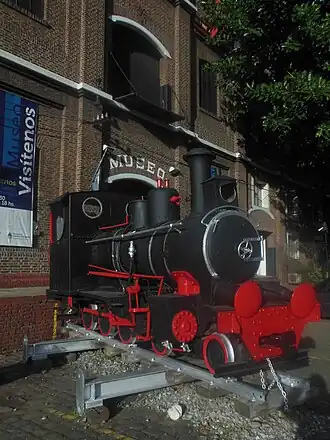 Locomotora a vapor del Ferrocarril General Urquiza expuesta en la entrada al museo. | ||