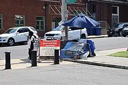 Las pertenencias de Smith se amontonaron al otro lado de la calle, donde ella las cubrió con una lona y montó su campamento y siguió viviendo mientras mantiene su vigilia de protesta.[14]