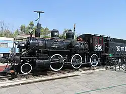| NdeM 650 | Locomotora de vapor de vía ancha 2-6-0 | Esta locomotora fue fabricada por Baldwin Locomotive Works en 1901, entrando en operación ese mismo año en el Ferrocarril de Veracruz al Istmo bajo número 3 hasta su salida del servicio en 1955, fue rescatada en los talleres de Aguascalientes en 1980 y utilizada para viajes especiales. Llegó al Museo Nacional de Ferrocarriles en 1987.[19][18] | ![]() |