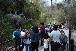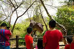 Se encuentran 11 diferentes dinosaurios mecatrónicos con sonido y movimiento; un nido de huevos del velociraptor, la simulación del Volcán Chichonal (haciendo erupción), y al final la cabeza de T-Rex en la tienda de souvenirs.