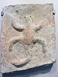 | Ofrenda funeraria encontrada en la zona arqueológica. | Cabeza de mujer elaborada en estuco. | Mascarón en estuco que adornaba los templos | Mascarón en estuco. | Mascarón que adornaba los templos. | |||