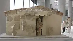 - El frontón de La apoteosis de Heracles, de un edificio desconocido, que representa la bienvenida dispensada al héroe en el Olimpo, tras su muerte. Además de Heracles, están esculpidas las figuras de Hera, Zeus, Iris y de otra diosa en mal estado, quizás Atenea.