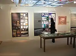 Las piezas en exhibición se disponen en orden temático e incluyen presentaciones interactivas que incorporan textos, soportes visuales, fotografías auténticas y películas, incluyendo documentales producidos por el propio museo.
